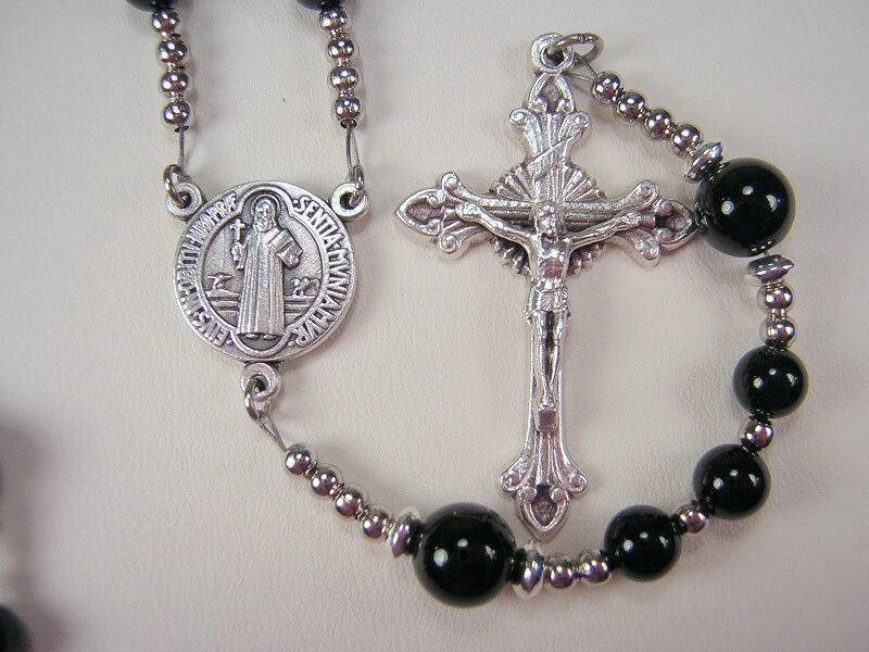 Boys Black Rosary Catholic 16 034 Black Onyx Gemstone El Nino Catolico Rosario Ebay